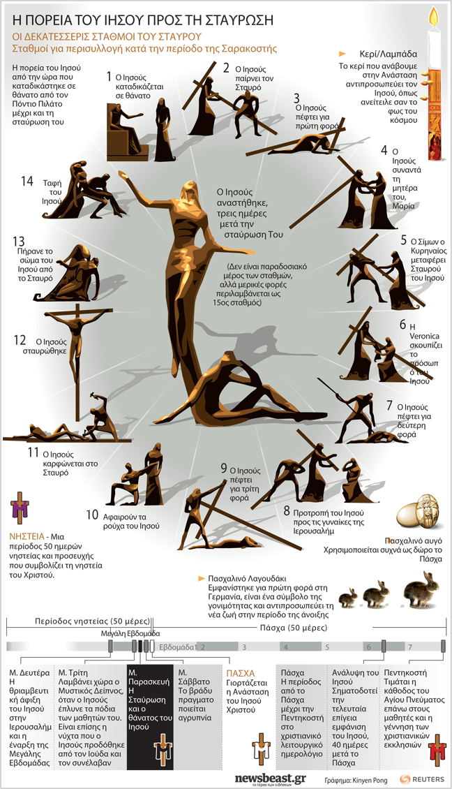 Οι Ρωμαίοι επιβάλουν στον Σίμωνα τον Κυρηναίο, που διερχόταν από εκείνο το σημείο, να μεταφέρει αυτός τον Σταυρό του Μαρτυρίου. Τελικά στις 9 η ώρα το πρωί, ο Ιησούς σταυρώνεται. Το μαρτύριο του Χριστού κράτησε έξι ώρες. Στις 3 η ώρα το απόγευμα παρέδωσε το πνεύμα Του, αφού προηγουμένως είχε συγχωρήσει όσους ευθύνονταν για τον θάνατο Του.